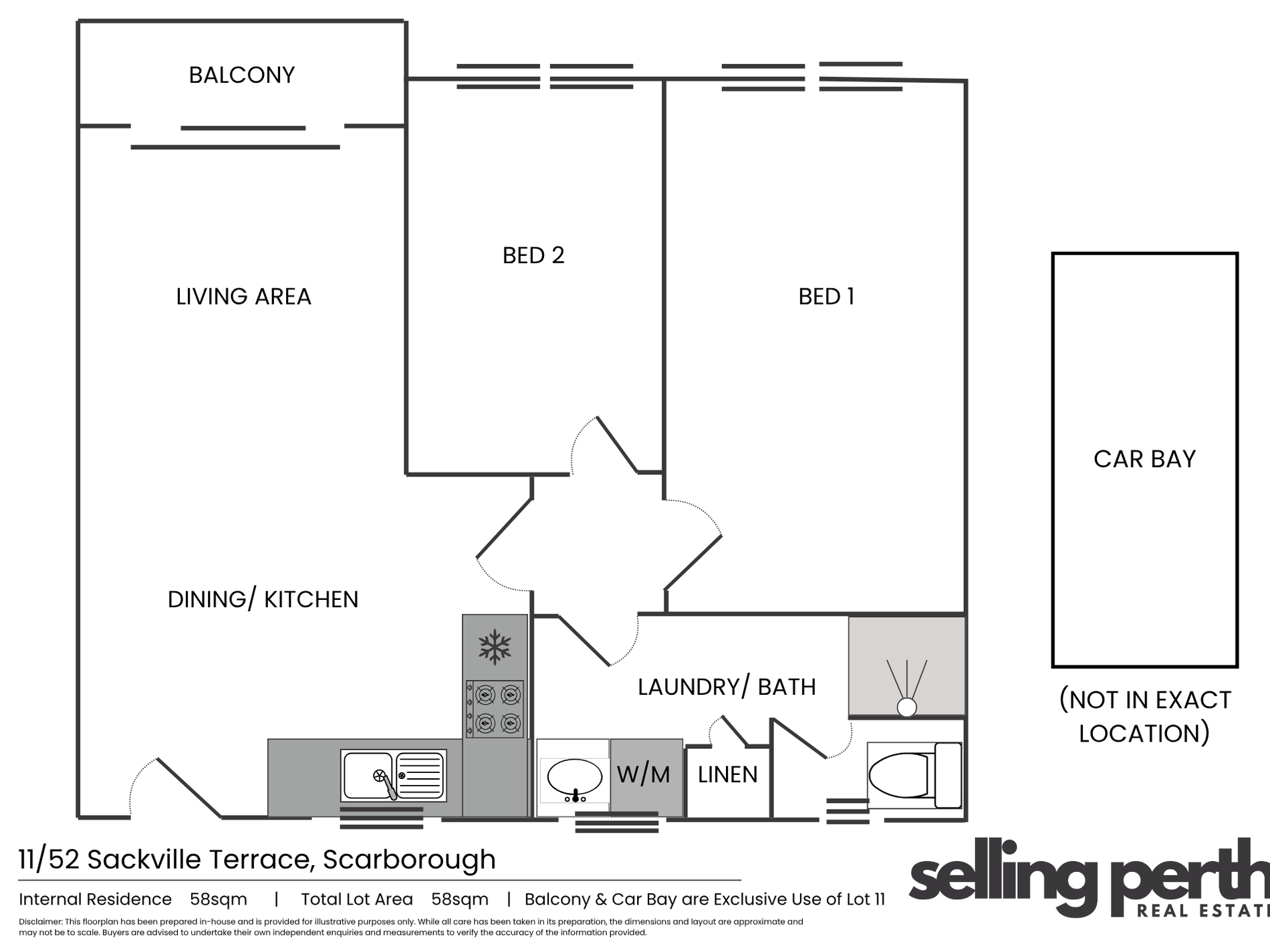 • Internal Area: 58 sqm