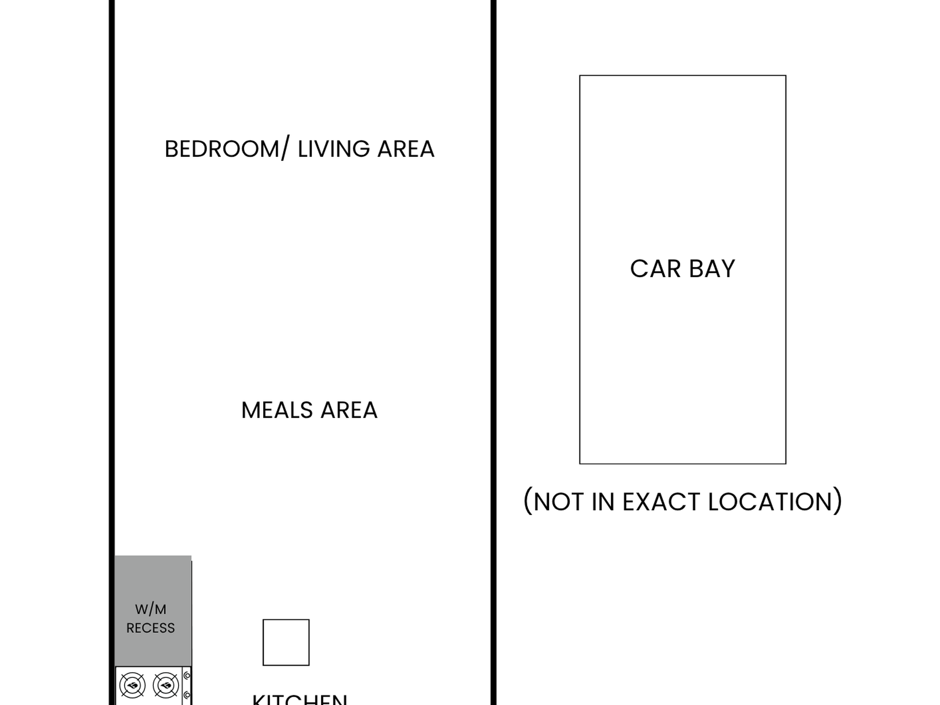 • Open plan studio style apartment (Potential to separate the bedroom area from the living space)