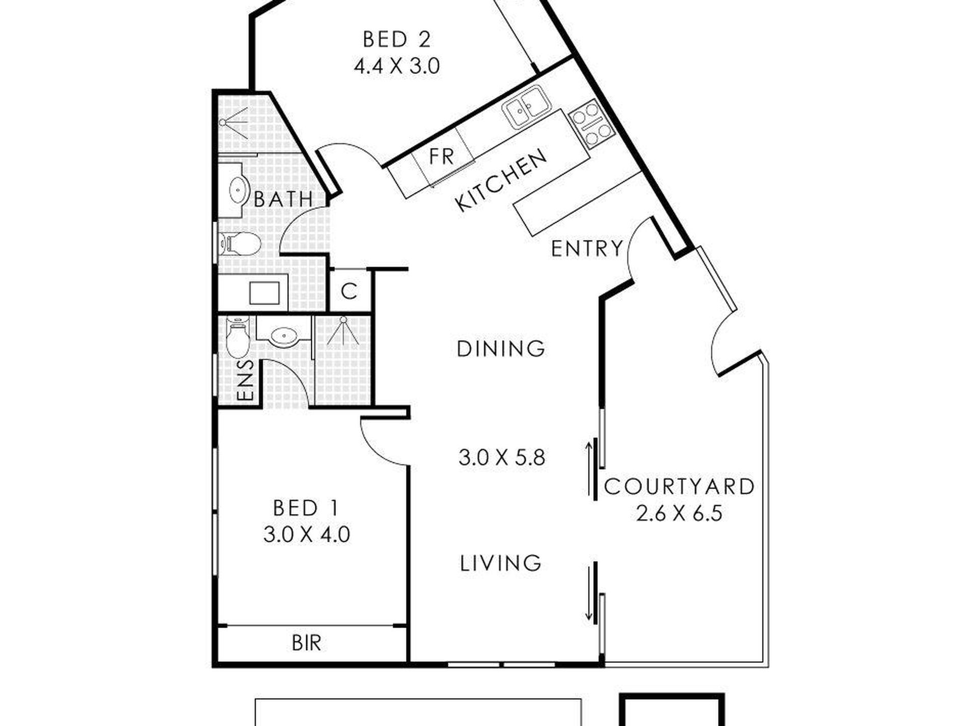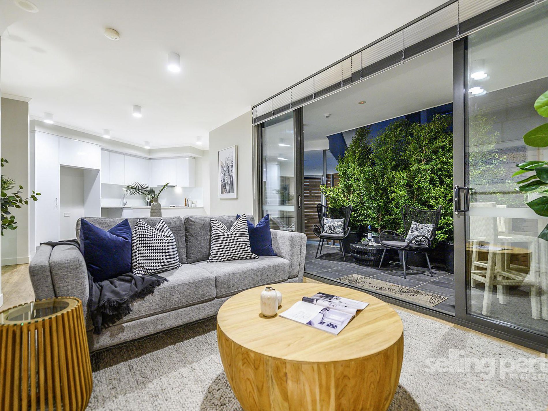 • Spacious open living/dining area with high ceilings, plenty of room for your furniture and semi-stacker sliding doors that open up to the alfresco courtyard garden