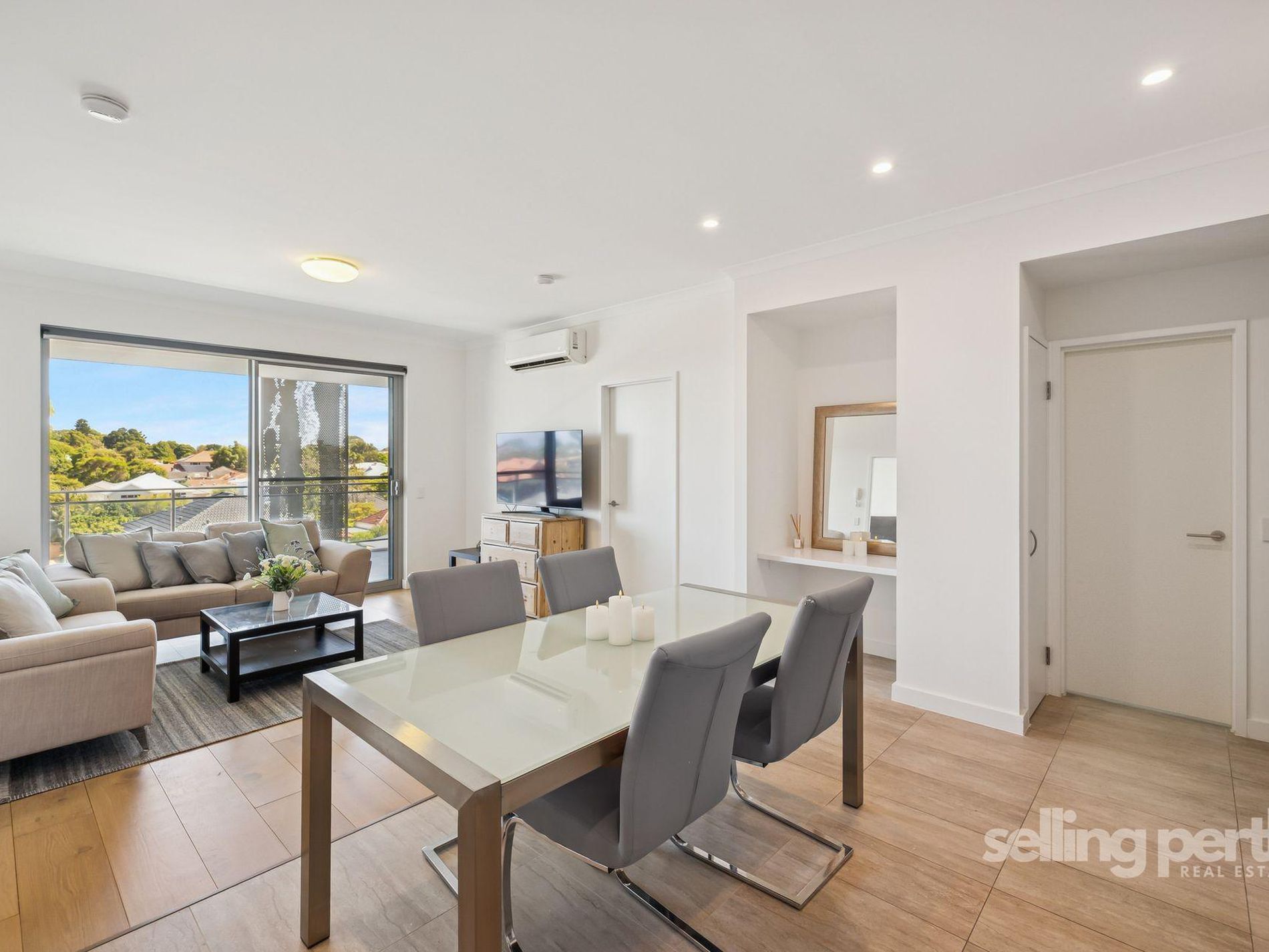 • Split system air conditioning, timber flooring